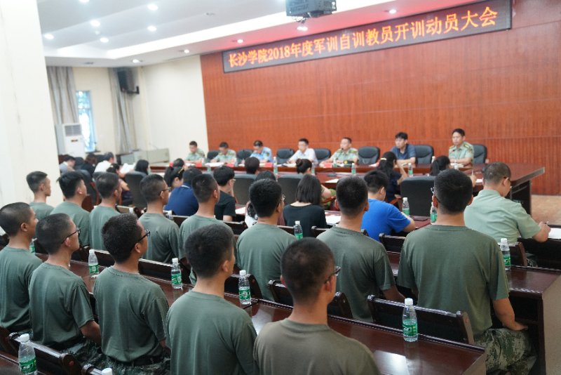 会议由武装部副部长王成岗主持。会上,武装部部长戴伟丁就开展军训自训进行了说明并强调了培训期间的管理和纪律要求。省军区大学生军训办公室副主任汤光强、开福区人民武装部副部长雷志勇对学校的军训自训工作给予了充分肯定,并分别从大学生军训工作的意义、如何科学组训施训,完成军训任务提出了宝贵意见。