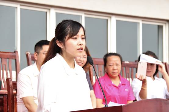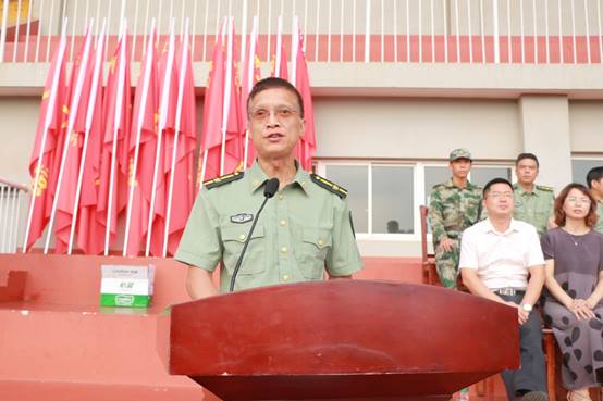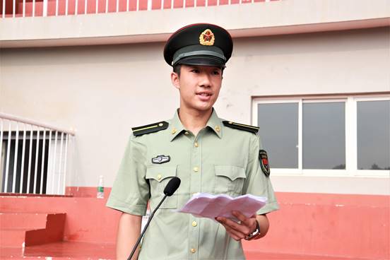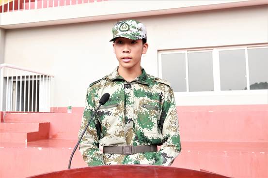 新生代表、生物与环境工程学院2018级学生黄源代表全体新生庄严承诺:“一切行动听指挥,不断战胜困难、战胜自我,努力完成好规定的军训任务。”教导员代表张文茜老师呼吁同学们谨记“力学笃行”的校训,以饱满的精神状态投入到军训中去,圆满完成各项军训项目。军训教员代表杨智帆结合两次军训自训的经历向全体军训教员发出倡议:“拿出更加坚定的决心,焕发更加坚韧的斗志,保持更加亢奋的激情,只许进不许退,只许胜不许败。”