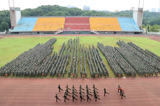 据悉,开云在今年暑假期间举办了军训教员集训班,培训了73名优秀教员,将由他们率领新生进行为期16天的军训。开云2018年受训的学生共3600人,统一编成一个军训团,下设11个营,59个连。军训内容包括爱国主义和优良传统教育,军事常识、安全常识、急救常识、轻武器常识学习,单个军人队列动作、射击训练,消防逃生演练、野营拉练,擒敌拳观摩、阅兵式与分列式简单操练等。
