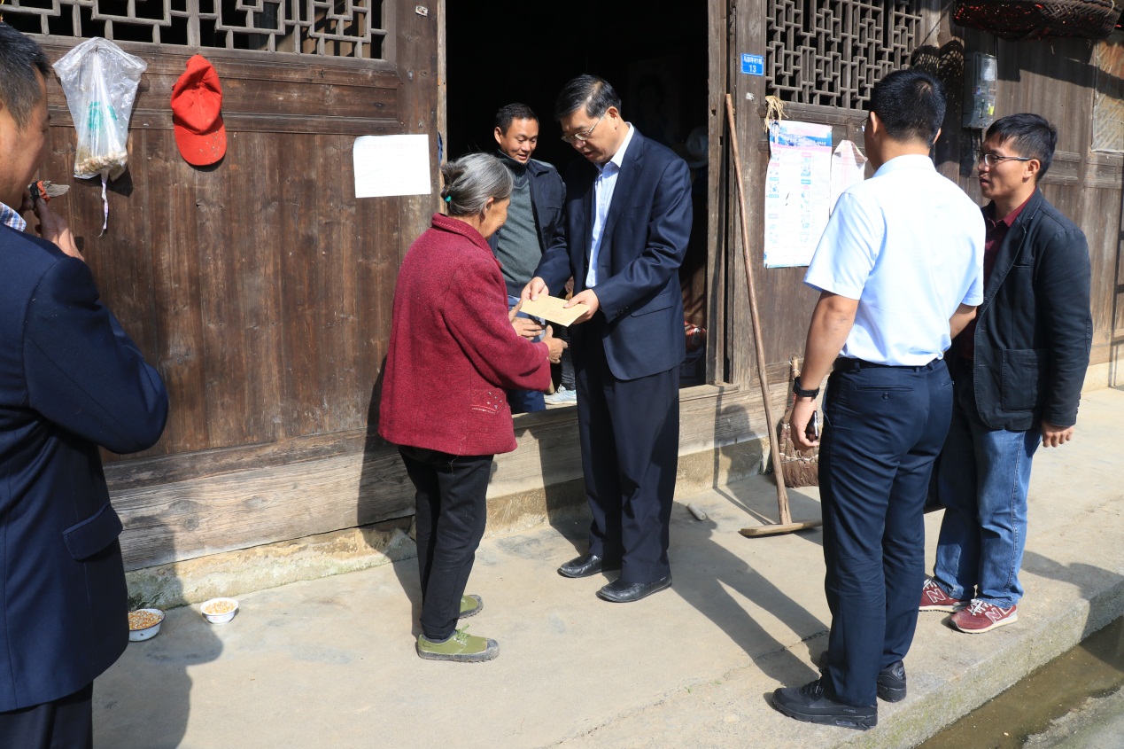 在大安乡马脚坪村、翻身村、大红村三个贫困村,韦成龙一行查看了各村新建成的综合服务平台、基础设施建设和特色农业产业发展情况,实地了解帮扶工作一年来所取得的成效。期间,韦成龙一行走访慰问了两户因残致贫的建档立卡户,听取解决他们的困难并送上慰问金;查看了大安乡城镇建设情况及烤烟产业情况;看望了大安中心小学在校师生并查看援建教学楼进展情况。随后韦成龙一行与龙山县、大安乡两级干部举行座谈,听取精准脱贫工作汇报,研究下一步工作。