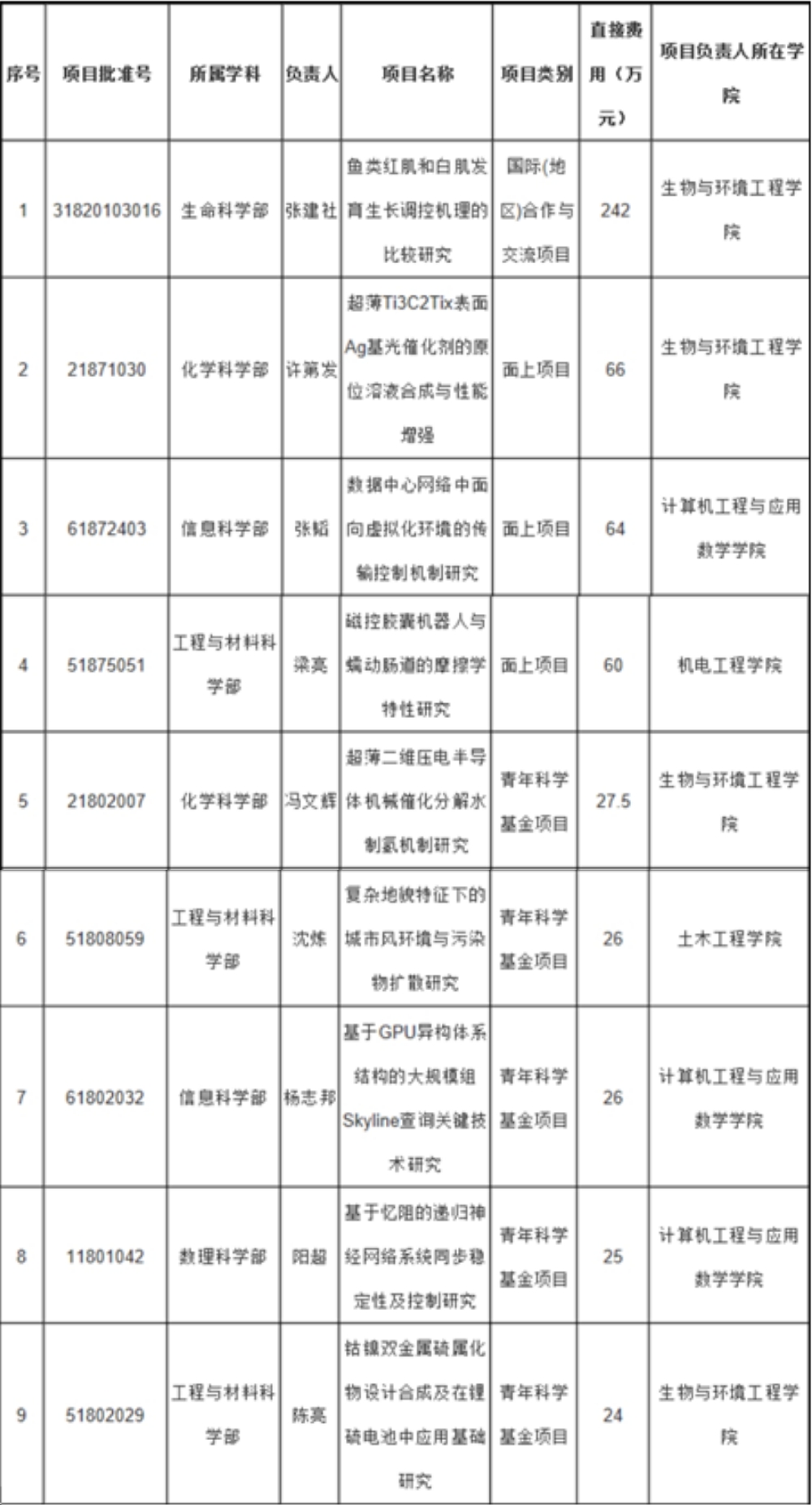 (开云2018年度获得国家自然科学基金立项资助情况一览表)