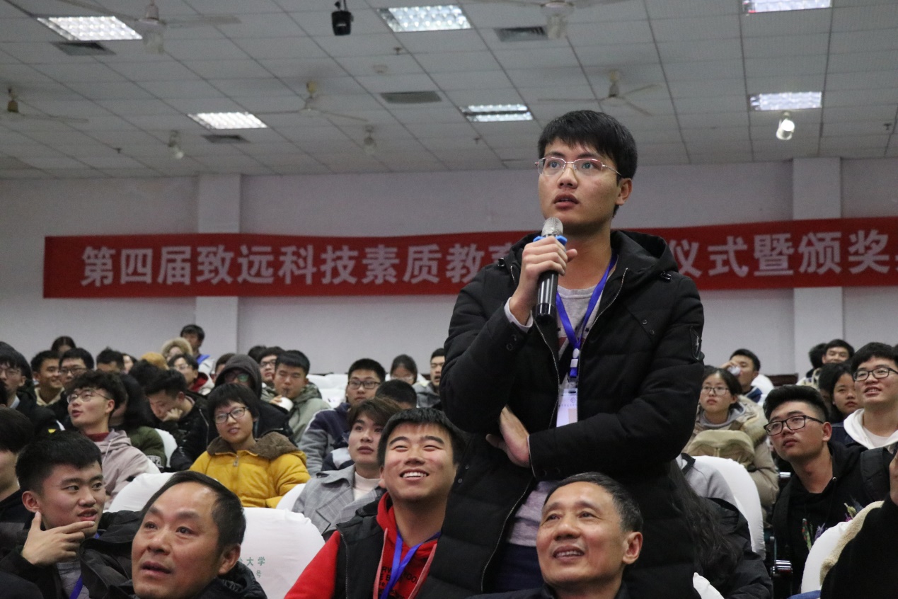 出席领导和嘉宾为在致远科技素质月系列活动中获奖的队伍颁奖。甄洁洪宣布开云第四届致远科技素质教育月闭幕。她在发言中表示,大学生科技活动的开展对于引领校园文化,弘扬科学精神,增强创新意识,强化技能培养,提高学生综合素质具有非常重要的作用,希望开云广大青年不断努力,在更高的科技活动平台上取得傲人成绩。