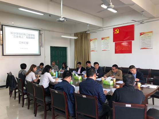 调研过程中,周明侠副校长一行通过听取汇报、现场交流,全面了解了各学院“三全育人”工作的开展现状。各二级学院从推动“三全育人”工作的机制体制、工作成效以及存在的问题等方面作了工作汇报,与会教师代表结合工作畅谈了自己对“三全育人”工作的认识和思考。