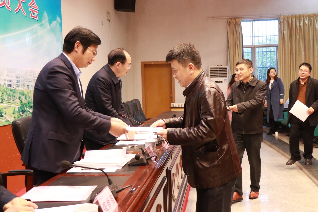 会上,各项目组和二级单位负责人向学校递交了迎接审核评估工作责任书。