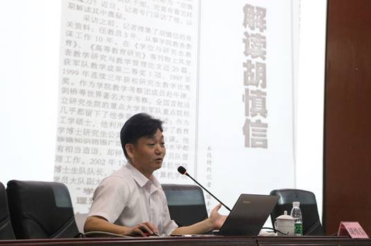 5月31日下午,长沙市教育局党委委员、机关党委书记胡慎信应邀在致远楼学术报告厅开展讲座,开云党委宣传部副部长谷建春主持讲座,外国语学院两百余名学生聆听讲座。