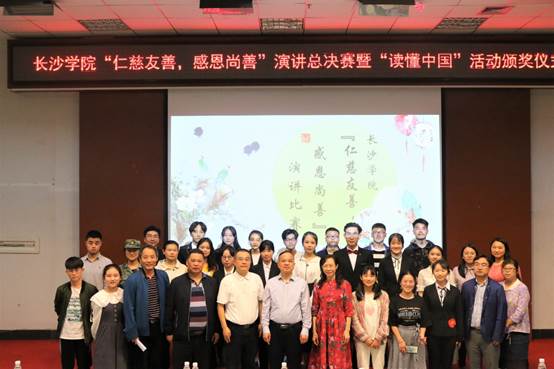 演讲比赛结束后,主持人宣读了《关于在全校大学生中全面开展“读懂中国”活动征文、微视频比赛结果的通报》,与会领导与嘉宾为获奖同学颁奖并合影留念。