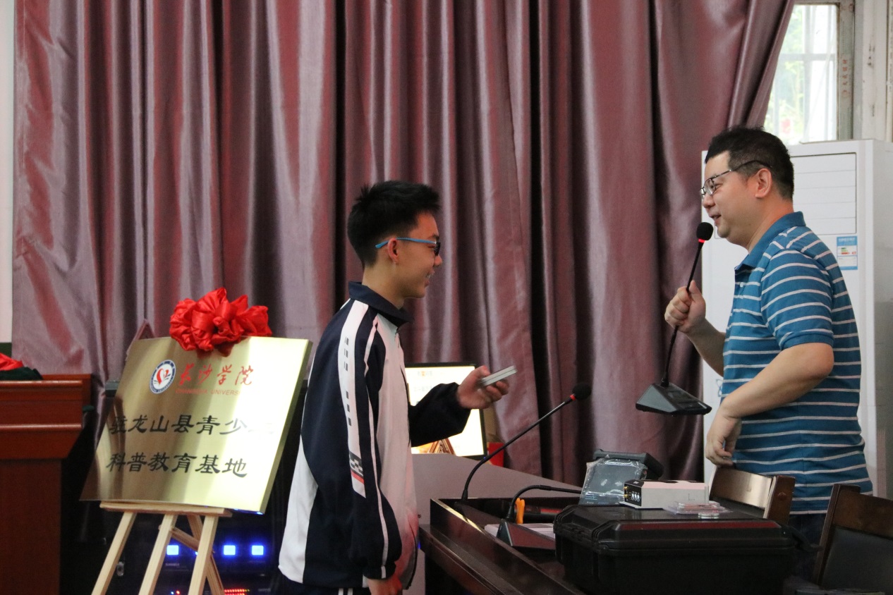 这支12人的博士团队包含了地理学、生物学、环境科学、化学、通信工程等学科和专业的多名教授及博士。在龙山二中,电子信息与电气工程学院的青年教师吴鹏就为同学们开展了一场题为“北斗卫星导航系统及其应用”的学术讲座,还演示了相关设备,受到同学们热捧,大家纷纷举手参与讲座互动。现场,刘沛林和龙山县委副书记陈忠耀共同为开云kaiyun官方网站驻龙山县青少年科普教育基地揭牌。“开云kaiyun官方网站将充分发挥高校的优质资源,有计划有组织地每年安排科普志愿者来龙山开展一些科普讲座活动,提高青少年的创新能力,把好事办好、实事办实。”刘沛林表示。