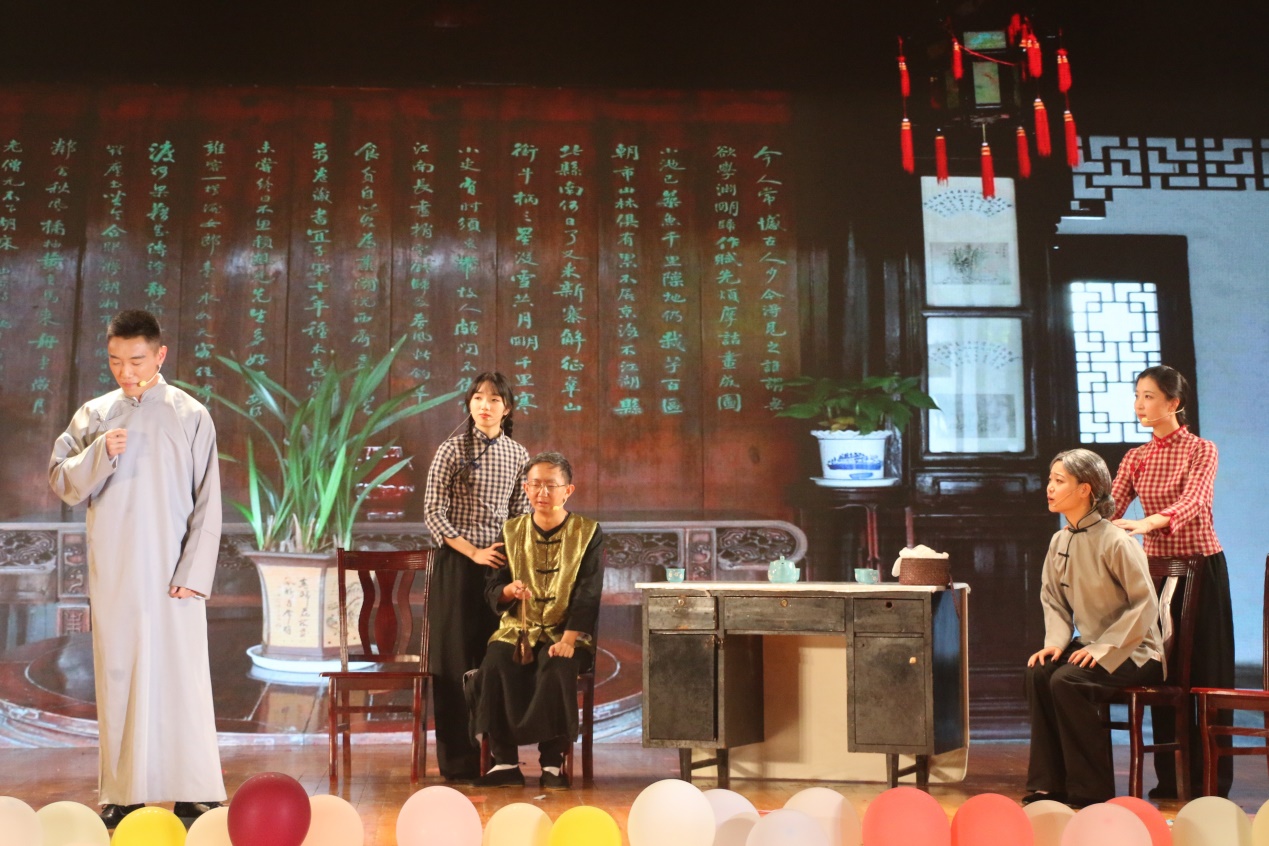 晚会共由七个节目组成,青果剧社、校艺术团以及影视艺术与文化传播学院各级学生联袂演出。同学们将大学生活“搬入”自编自导自演的节目深情呈现。其中,由青果剧社带来原创话剧《少年闯乡关》《绒花》以及情景剧《盼》,分别探讨了少年的理想、青年的选择、亲情的陪伴等人生主题,展现了同学们在剧本创作、节目编排、话剧表演等方面的实践动手能力。校艺术团通过恢宏大气的舞蹈表演《我和我的祖国》,歌颂了对伟大祖国的热切情思。节奏活泼轻快的舞蹈串烧《青春日记》展现长大学子忙碌而充实的日常生活。由影视艺术与文化传播学院各级学生共同朗诵的《长大青春》和《洪山路98号》,表达了对母校的不舍与留恋。