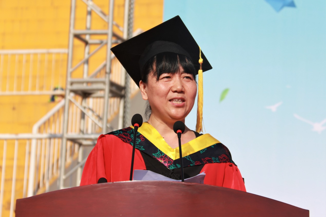 来自机电工程学院的教师代表陈蕾教授为毕业生们送上了毕业祝福,鼓励毕业生们在未来的人生道路上要坚持理想与信念,勇于创新,个性发展,走出自己的出彩人生。
