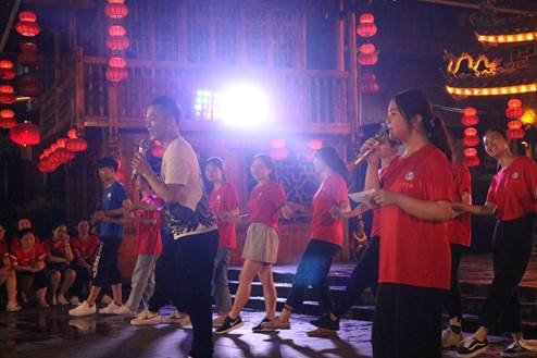 平坦乡皇都村的侗族民歌公益课堂吸引了村里的40余名孩子参加,由于村里旅游与民族演艺的发展较好,大部分孩子性格活泼、开朗,具有较强的表演欲望。通过公益课堂的学习与训练,开云kaiyun官方网站师生教授孩子们侗族民歌演唱,并选拔苗子,加强表演训练,组成童声“侗”听小合唱团,进而将其推向舞台演出。7月13日晚,童声“侗”听小合唱团在皇都民族演艺舞台精彩亮相,孩子们自信、大方,声音清脆、悦耳,演唱了《筑塘歌》、《敬酒歌》,赢得了现场千余名观众经久不息的掌声与喝彩。在活动结束之后当地一位村干部激动的拉着同学们的手说道:非常感谢你们能给孩子们这么好的表演机会,这也让我们正真看到了我们侗族传统民歌传承下去的希望。并且此次活动还得到了怀化电视台、通道电视台等多家媒体的密切关注,并进行了全程的拍摄。