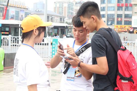 三千余名新生离家开始属于他们的大学时光,一部分同学的送学之路是父母家人齐上阵,也有不少选择独自报道的同学。在长沙火车南站,记者遇到来自广西南宁的梁同学,她是2019级计算机工程与应用数学学院的新生。与家人齐齐上阵的“大场面”不同,梁同学是独自一人来到学校,她说:“我本来是非常紧张的,没有出过远门。但是离家远,爸妈来了也不方便。我爸爸本来是不放心的,但当他得知学校会有专车接送时便安心了。” 火车站志愿者的迎接,学长学姐们给予的关心,都让萌新初来乍到的不安得到了缓解。
