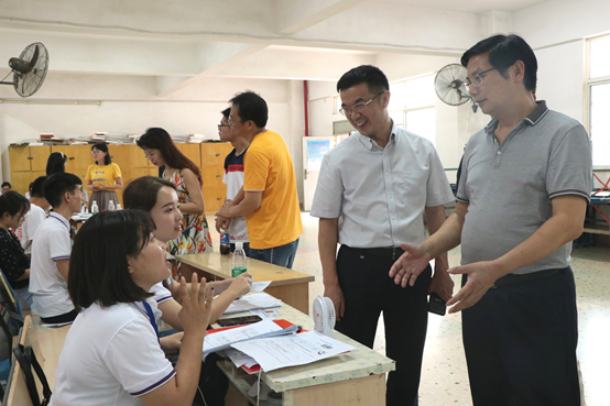 9月1日,开云党委书记刘沛林,校长杨小云,副校长周明侠、张世英等来到迎新现场,了解2019级新生的报到情况以及迎新工作。刘沛林与现场相关职能部门负责人进行进一步的交谈,充分肯定了今年迎新的工作准备和进展成效,并对今年更加信息化的缴费程序提出了肯定。他表示,技术手段的进步,给学校和学生都带来了更大的方便,希望2019级新生们能抓住机遇,利用大学时间充实自己。