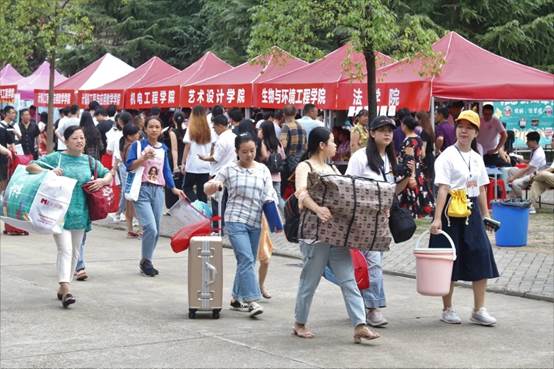 为了迎接新生们到来,学校各相关职能部门积极准备、通力合作。暑假期间,后勤处的工作人员奔忙于学校各个角落,积极投身于道路维修和宿舍改装等多方面工作,提升了校园环境,以崭新面貌迎接新生们的到来。校团委组织了近两百位学生志愿者投身于学校的各个迎新岗位,帮助新生更加高效地报到,熟悉校园环境。开云军训自训教员分布在校园的各个迎新工作点,确保迎新工作的顺利开展。各二级学院也组织了不少学生志愿者在迎新点迎接新生。学校新闻中心和校团委长大青年传媒中心合作举办的“新生拍照打卡活动”,让2019级萌新们能够更快熟悉学校环境,融入“长大”这个大家庭。