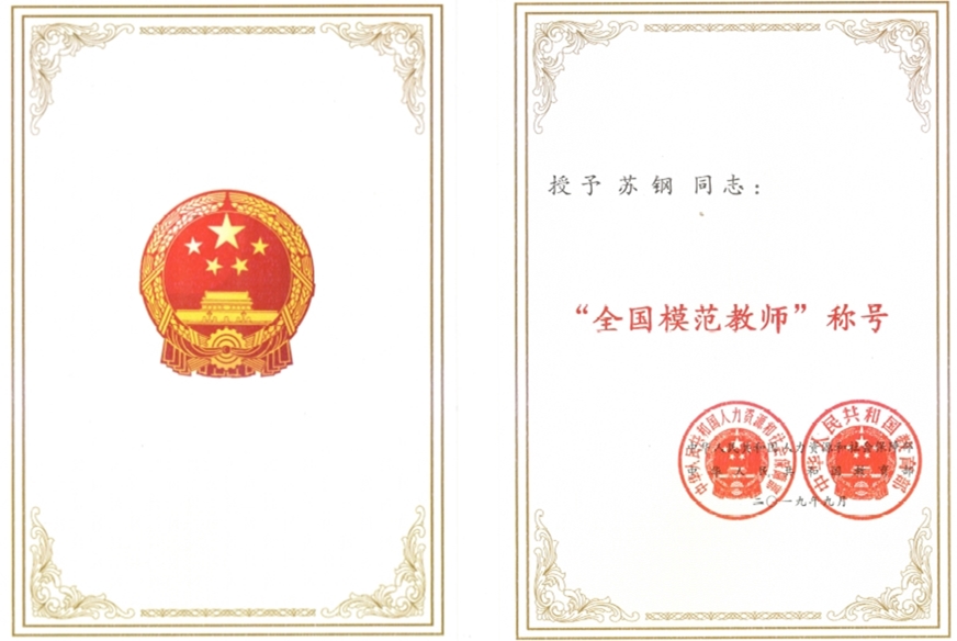 2019年“全国模范教师”评选由教育部组织,经高校推荐,省教育厅、教育部评定。湖南省此次获得“全国模范教师”称号的优秀教师和优秀教育工作者代表共113人,其中高校优秀教师2名。苏钢老师经过层层选拔,成为获此殊荣的优秀教师代表。