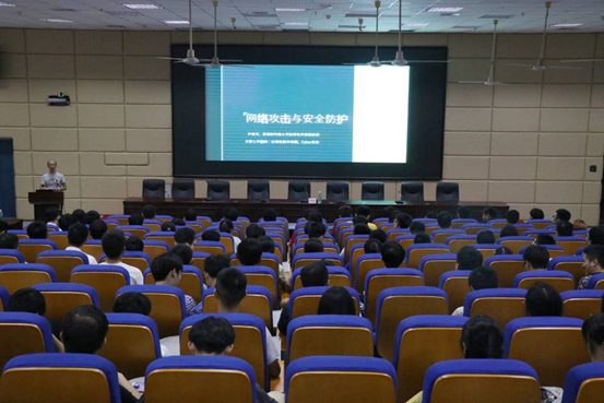 9月19日晚上,由党委宣传部、学生工作部(处)、校团委、党委武装部/保卫处、网络与现代教育技术主办的,以《网络攻击与安全防护》为主题网络安全知识讲座,邀请了中央网信办咨询专家、原国防科技大学计算机学院副教授尹俊文专家主讲。尹教授从学生日常生活谈起,阐述了无处不在的网络信息安全问题,强调了信息安全和个人隐私保护意识的重要性,就如何保护个人网络安全和个人信息安全提出了若干建议和意见。讲座内容兼顾理论深度和现实可操作性,赢得了在座师生的阵阵掌声。