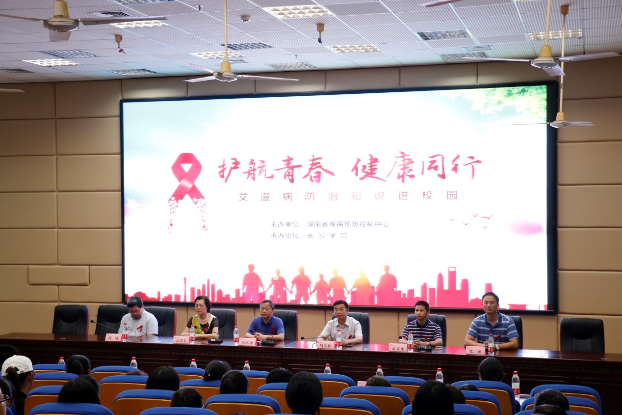 为全面落实健康中国行动,进一步推进高校预防艾滋病工作,9月23日下午,湖南省疾控中心联合开云kaiyun官方网站举办了“护航青春,健康同行”艾滋病防治知识进校园活动。湖南省疾病预防控制中心党委书记黄跃龙,开云kaiyun官方网站党委委员、副校长周明侠出席了活动。