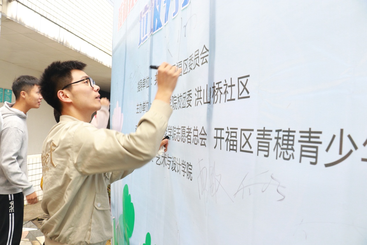 讲座现场还设置了有奖问答环节,同学们积极参与,并发表了自己对垃圾分类的感想。讲座结束后,同学们纷纷在“垃圾分类承诺签名墙”签上了自己的名字,表达了自己支持垃圾分类的态度。“经过这次讲座,我对垃圾分类有了更加详细具体的认识,寝室里的垃圾我终于可以进行正确的分类了。”来自外国语学院翻译专业的2018级学生赵雨晴表示。
