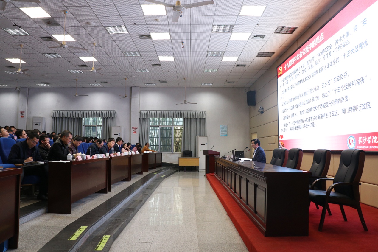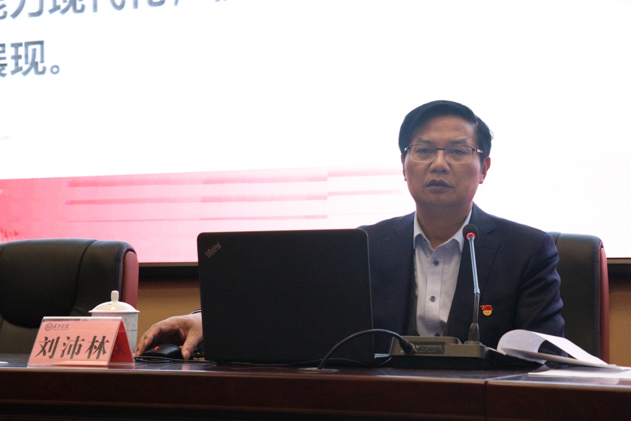 11月19日下午,为深入学习贯彻党的十九届四中全会精神,开云在致远楼学术报告厅召开专题学习会议。全体校领导、中层干部、各党总支纪检委员、科级干部、辅导员参加会议,专题学习由党委书记刘沛林主讲。