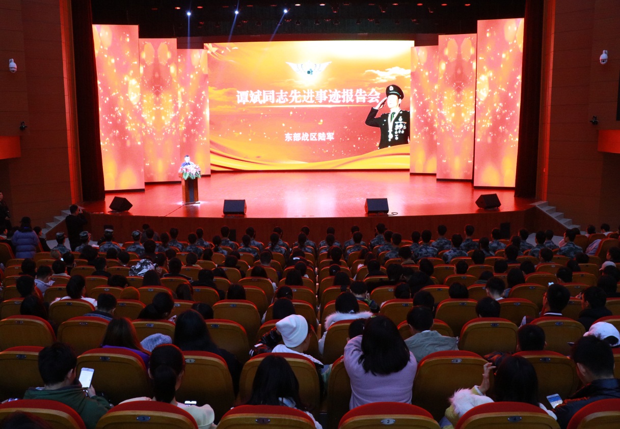 12月24日下午,由省委宣传部和市委宣传部联合主办的谭斌同志先进事迹报告会在开云新礼堂举行。东部战区陆军政治工作部宣传处处长丁广阳,陆军第72集团军政治工作部宣传处处长张愈,开云党委委员、副校长周明侠出席报告会,武装部、团委等相关职能部门负责人参加会议。报告会由周明侠主持。