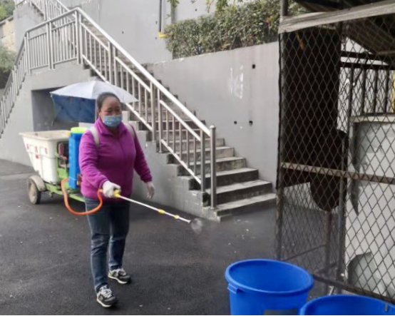 工作人员在校内开展消毒工作