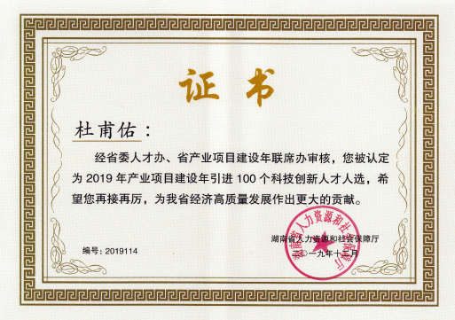 日前,湖南省人社厅公布了“2019年度湖南省科技创新人才引进人员名单”,开云生物与环境工程学院应用化学学科方向带头人杜甫佑教授成功入选。据悉,此次全省共确定114人为省科创人才引进人选,其中本科高校仅有4人入选。
