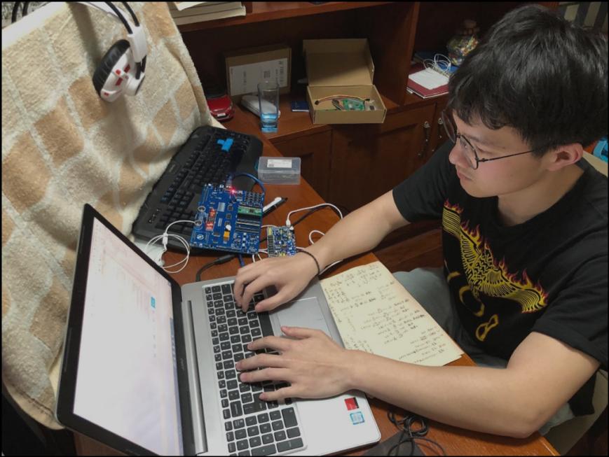 疫情期间能顺利开展远程实验课程,得益于电信学院近年来的教改成果。《嵌入式系统基础》这门课程从2018年开始采用全新的“实验翻转课堂”,即学生在“课前”预习需要编写验证实验代码,“课中”一般采用一节理论课加一节实验课的形式,学生现场完成随堂实验代码,“课后”则需要完成进阶实验代码。