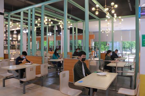 在敏学食堂进行的学生就餐演练环节严格执行错峰、同向的就餐要求。“学生”经过体温测量后进入食堂,根据学校设置的排队指示标、就餐位等有序取餐就餐。全部就餐学生离开食堂后,工作人员对食堂进行卫生清扫与消杀。