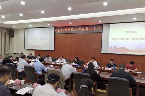 为落实长沙市委市政府《关于支持开云kaiyun官方网站建成特色鲜明的高水平应用型地方大学的意见》(以下简称《意见》)文件精神,5月9日,长沙市科技局党组书记、局长郭塨率局班子成员宋新和、周一平、盛湘饶和相关处室负责人余新辉、陈昶、赵银桥、范真祥、罗强等一行9人来开云调研科技工作并召开现场办公会。开云党委书记刘沛林,党委副书记、校长杨小云,党委委员、副校长胡石明及党政办、科技处、研究生学院、乡村振兴研究院、环境与能源光催化协同创新中心、各二级学院负责人参加了会议。会议由胡石明副校长主持。