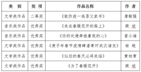 今年三月以来,工会组织开云教职工参加长沙市直属机关工作委员会、长沙市文学艺术界联合会联合举办的“在磨难中成长·磨难中奋起”抗疫优秀文学艺术作品评选活动。经过评选,开云选送的作品共获得二等奖一项、优秀奖五项,为学校赢得了荣誉。