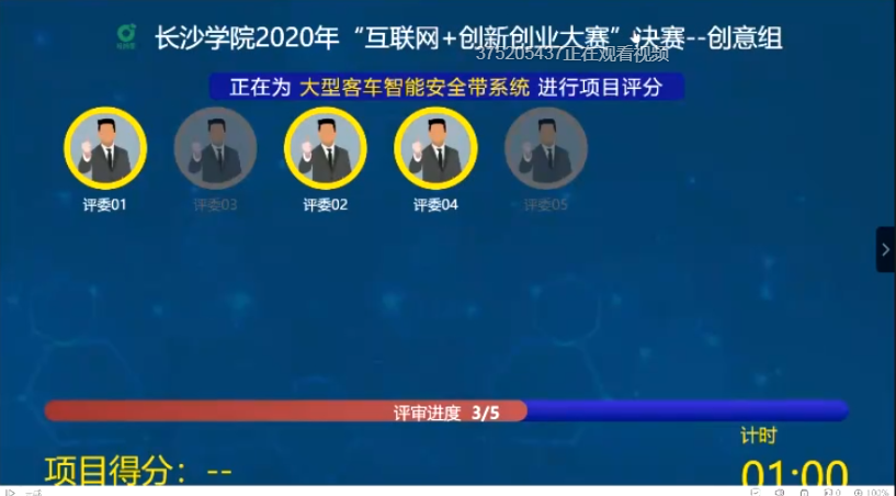 据统计全校共有140多支队伍参加了本次大赛,其中46支队伍参加线上路演决赛。决赛采用“腾讯会议+投智圈+腾讯课堂”多个网络平台组合、“线上路演+智慧评审+云端直播”无缝对接的模式进行。选手在“腾讯会议”平台进行路演答辩和专家评委互动,评委通过“投智圈”平台在线实时打分,评分结果实时公布。整个比赛通过“腾讯课堂”向全校师生进行直播,有近600名学生在线观看了比赛直播。