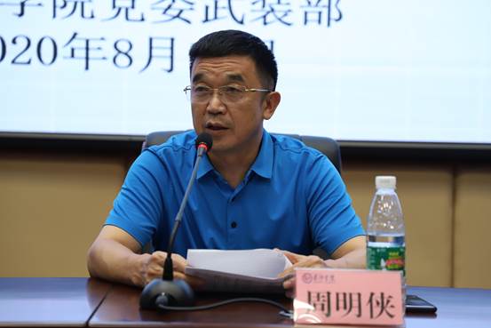 最后,周明侠作总结发言,他表示,新生军训是大学生阶段第一课,自训教员队伍是实施军训的基本力量,作用十分重要,全体人员要严格按照《普通高等学校军事课教学大纲》《湖南省普通高等学校学生军训组织规范》以及中央、省、市有关学校疫情防控规定,严格管理,科学施训,采取理论教学与实操训练相结合的模式,引导大家成为“军事技能型”和“实战指挥型”的复合型人才。此外,他对军事技能“四会”教练员暑期培训工作组成员提出了三点要求:一是树牢大局意识,实现科学防“疫”与严密施训有效结合;二是勇于担当作为,实现军训教员与疫情防控战斗员的身份转变;三是严守训练规章,实现训练质量与训练安全的双层目标。