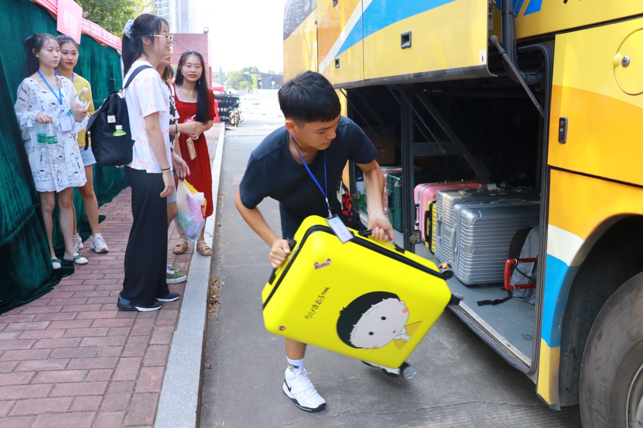 (返校学生乘坐免费的接驳大巴往返校门和宿舍园区。)