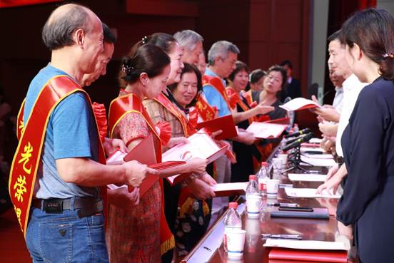 大会为2019-2020学年度荣休教师代表颁发荣誉证书