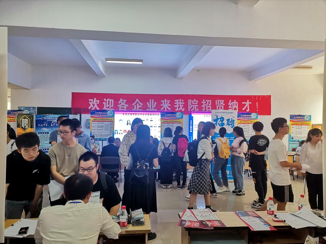 “水电八局是正式国企编制。”“对呀,没有试用期,入职就是正式员工。听说之前学生会主席也在这家单位。”9月15日,一场别开生面的招聘会在理工楼A区大厅举行,现场的同学们议论纷纷,应聘热情高涨。当天,土木工程学院在此举办2021届毕业生秋季双选会。300余名土木工程学院2021届毕业生及部分其他学院毕业生在26个企业展位前投递简历。