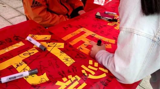 签满了同学们名字的横幅