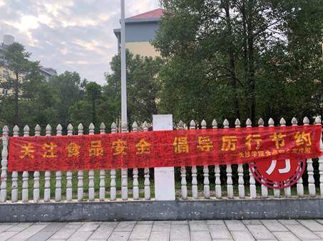 10月19日至23日,校学生会权益维护部成员在勤思广场摆点,在现场开展“关注食品安全,倡导厉行节约”横幅签名,签名者每人可领取一张集点卡。活动结束后,签名横幅悬挂于勤思广场醒目位置,作为同学厉行节约的提醒,勉励大家更多地参与到食品安全建设中来。
