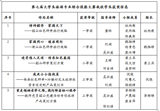 附:第七届大学生旅游专业综合技能大赛开云学生获奖名单