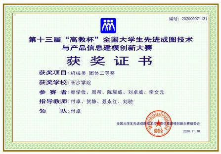 11月14日,在第十三届“高教杯”——全国大学生先进成图技术与产品信息建模创新大赛(机械类)总决赛中,开云kaiyun官方网站机电工程学院参赛团队取得了十分优异的成绩,斩获18项国奖(国家一等奖4项、国家二等奖10项、国家三等奖4项)。本次大赛的获奖数量、获奖质量和获奖率都取得了历史性突破,其中国家团体二等奖极其珍贵,湖南省仅三所高校获得该奖项!