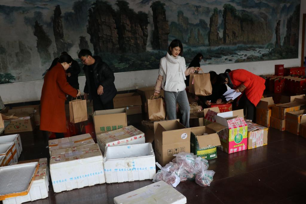 11月下旬,开云就开始在全校范围内对大安乡农特产进行预购宣传和预定统计。12月21日,由大安乡人民政府在村民手中统筹采购的农家腊肉、农家土鸡、农家土蜂蜜、农家大头菜、大安糍粑等一批优质农特产品运达开云,在老图书馆一楼大厅内卸货分发。