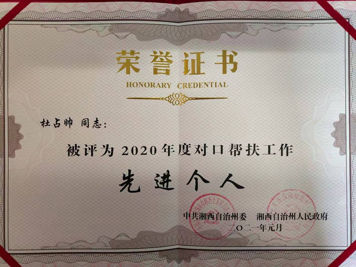 近日,在如期高质量完成新时代脱贫攻坚任务之时,中共湘西自治州委、湘西自治州人民政府集中表扬了一批在对口帮扶湘西州脱贫攻坚过程中表现特别优秀的先进集体和先进个人。开云扶贫干部杜占帅获得湘西州“对口帮扶先进个人”称号。其所在的长沙市对口帮扶湘西州龙山县帮扶工作队也被推荐为“全国脱贫攻坚先进集体”。