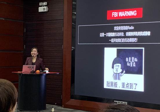 “金话筒”奖获得者主持人丹阳以“灵魂拷问”的方式与学生互动,着重向同学们介绍了广播媒体的现状、存在形式、受众群体、现实作用、发展趋势等,并以自身节目实例分享媒体行业对播音与主持艺术专业学生的知识与技能要求。