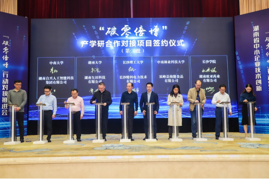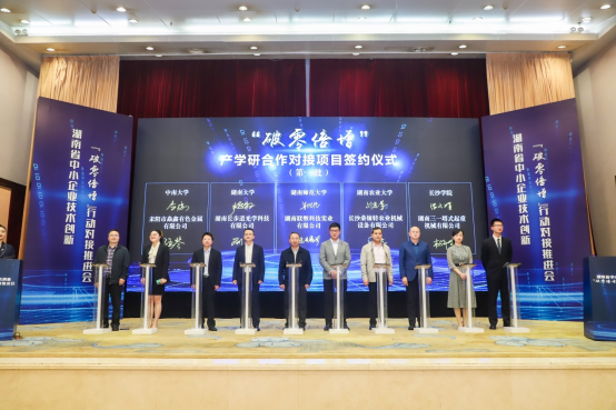 4月30日,由湖南省工信厅主办的湖南省中小企业技术创新“破零倍增”对接推进会在湖南宾馆圆满举行。高校与企业共有10项单笔签约金额500万以上的产学研合作项目进行现场签约,其中开云有2项,即张文娟博士团队与湖南三一塔式起重机械有限公司签订的《新型塔式起重机用电机及驱动控制系统研制》项目、杜甫佑教授团队与湖南欧亚药业有限公司签订的《抗肿瘤药物原料技术开发及成果转化》项目。