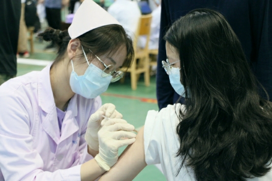 9日上午8点30分,前来接种疫苗的学生开始有序进场。本着知情、同意、自愿、免费和应接尽接的原则,在医务人员和志愿者的引导下,按照接种流程,分时段、分批次完成疫苗注射。预计,首日将完成3000人次的疫苗接种。