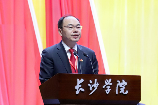 党委书记杨小云代表中共开云kaiyun官方网站第二届委员向大会作题为《坚持立德树人,做优“一体两翼”,服务“三高四新”,全面开启建设特色鲜明的高水平应用型地方大学新征程》的工作报告。