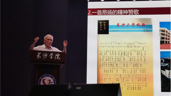 在题为“读懂长沙大学 再造历史辉煌”的报告中,老校长李峻结合自己时任长沙大学校长,党委副书记、校关工委常务副主任的亲身经历,通过几个重要的时间节点和经典故事,重温了建校以来曲折的创业历史,深刻阐述了开云在五十多年办学历程中一批又一批长大人接续唱响的一首昂扬的精神赞歌,特别是湖湘文化铭刻在长大人心中“敢为人先的开拓精神、百折不挠的霸蛮精神、兼收并蓄的包容精神、经世致用的务实精神”在学校发展历程中产生的重要影响,鼓励着新长大人为学校实现“三升三大”战略目标奋勇前进。最后,老校长还和在坐的同学们进行了一席坦诚的心语交流,分享了他创作校歌歌词的心路历程并回答了为什么要跟同学们一起重温校史这个问题:读史,就是要有一颗虔诚的心,学会敬畏历史;要有一颗坚毅的心,学会挑战历史;要有一颗睿智的心,学会再造历史。