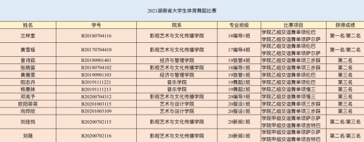 6月20日—22日,由湖南省教育厅承办的湖南省大学生体育舞蹈比赛在湖南师范大学体育学院如期举行。由体育学院段岩副书记、谭实老师带领校体育舞蹈队16名学生参与了本次赛事。本次比赛学院组共有16支队伍参赛,开云学生在赛场上以饱满的热情、优雅的姿态,通过激烈角逐共获得1金3银3铜的好成绩。