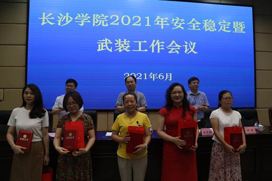 6月25日下午,学校在致远楼学术报告厅召开2021年安全稳定暨武装工作会议。全体校领导、党委委员,全体中层干部,全体辅导员,洪山桥派出所所长何轲和驻校民警王文胜参加会议。会议由党委副书记汤文胜主持。