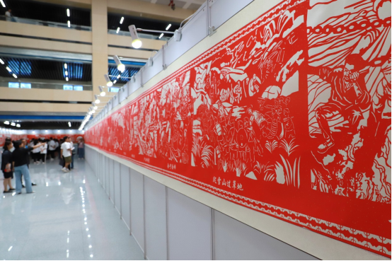 百米剪纸长卷共分为“开天辟地”“改天换地”“翻天覆地”“惊天动地”四个篇章