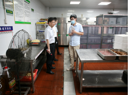 7月6日上午,副校长祝磊带领后勤处、学工部、保卫处及团委等部门相关人员对学校四个学生食堂食品卫生环境、食品安全管理、餐饮质量、留样洗消、消防安全等进行检查考评,现场向各食堂负责人了解食堂经营、管理及餐饮服务情况并作工作指导。后勤处领导班子陪同检查考评。