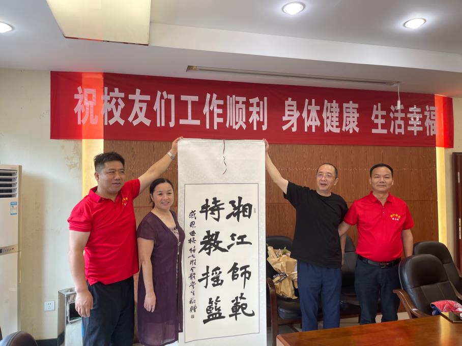 7月17日上午,“重走青春路,湘师再叙情”原湘江师范六十六班和特三班毕业30周年师生联谊会在图书馆一楼报告厅举行。同时,湘江师范特七班在一办公楼二会议室举行“相识30年”纪念活动并向母校赠送字画。学校党委委员、副校长祝磊,原湘师校长李峻,当年三个班的班主任及任课老师、校友会负责人参加聚会活动。联谊会由校友代表冯斌、杨梅和王荣主持。